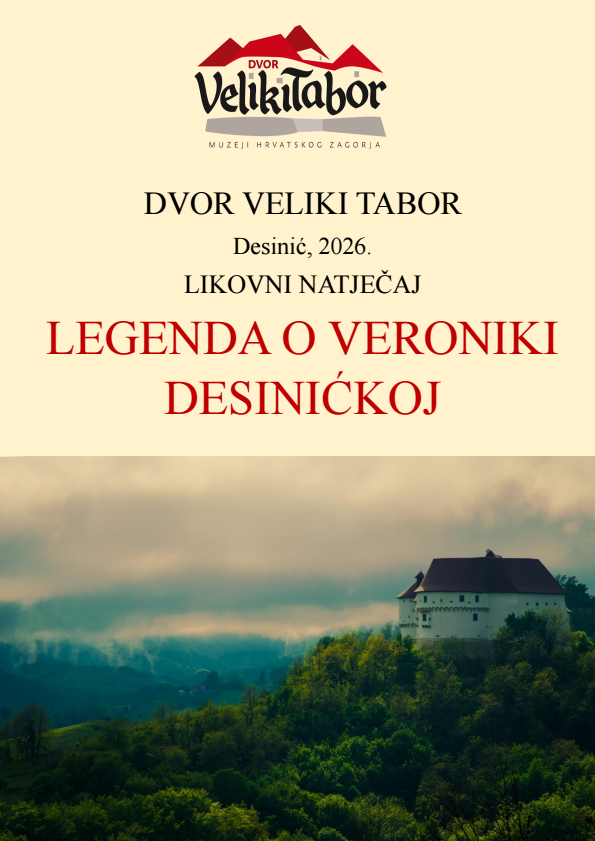 We invite children to learn about the legend and show their artistic skills, creativity and imagination in creating their own art works inspired by this love story. Entries can be sent by September 15, 2026 to the address: Dvor Veliki Tabor, Hum Košnički 1, 49 216 Desinić, with the note For the art competition.