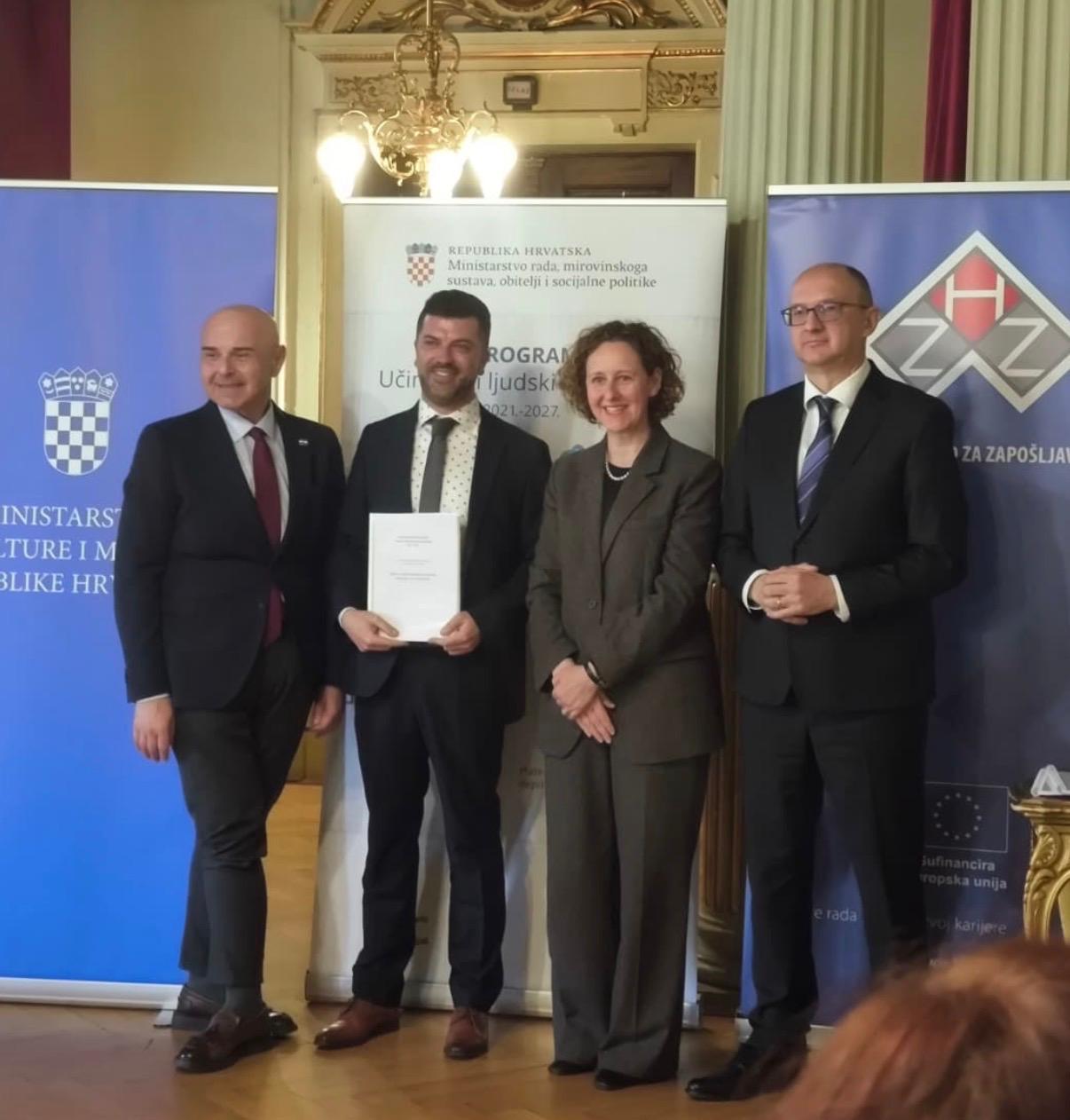 At the Croatian National Theatre in Zagreb, on Tuesday, 24 March 2026, a grant agreement was signed from the European Social Fund for the project Krapina Neanderthal Museum: A Time Machine for Everyone. The agreement was signed on behalf of the Museums of Hrvatsko Zagorje – Krapina Neanderthal Museum by the Director of the MHZ, Jurica Sabol, and at the award ceremony the agreement was presented by the Minister of Culture and Media Nina Obuljen Koržinek, the Minister of Labour, Pension System, Family and Social Policy Alen Ružić and the Director of the Croatian Employment Service Ante Lončar. The total value of the project is 135,202.43 euros and is fully (100%) financed by the European Union.