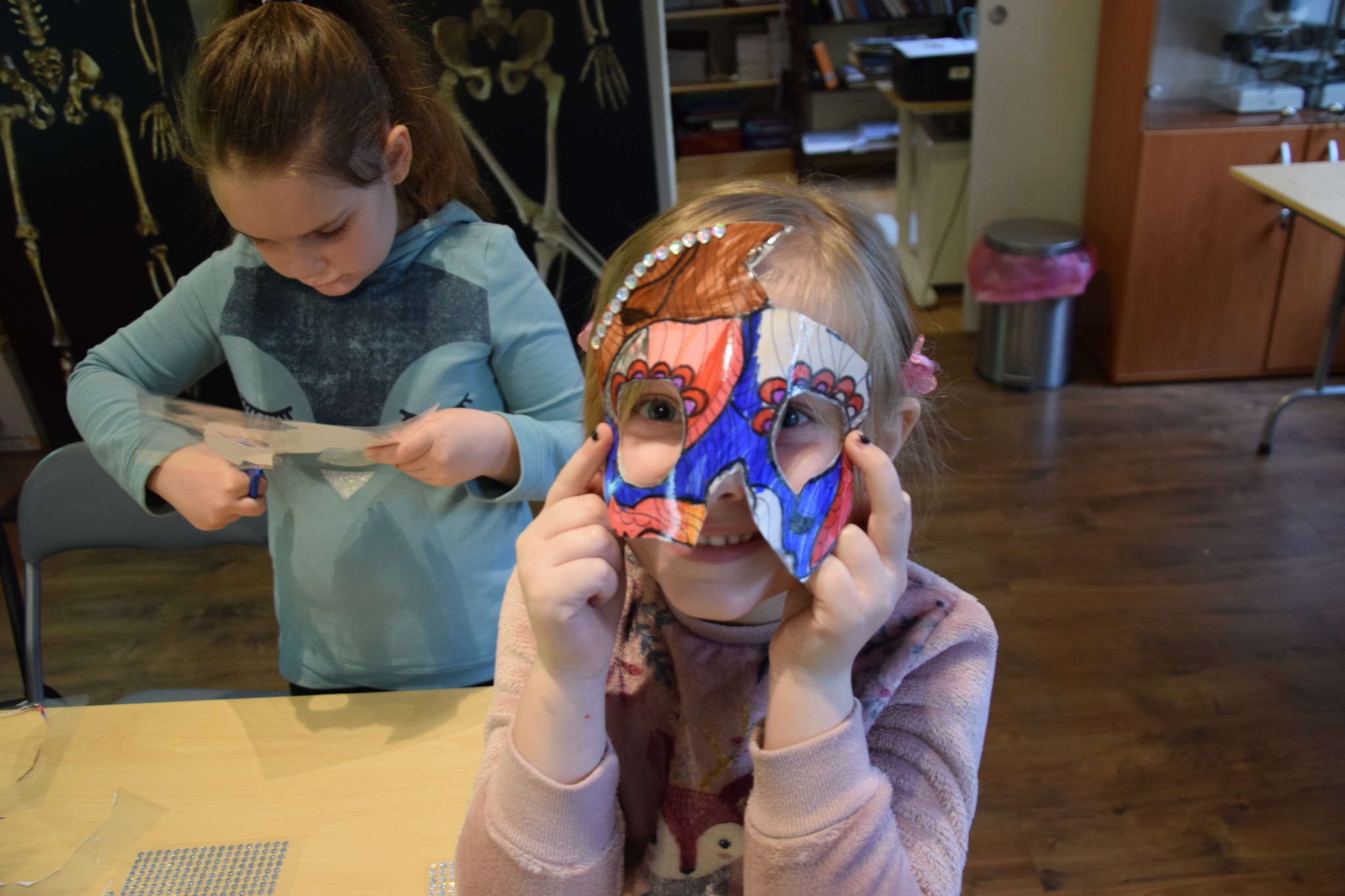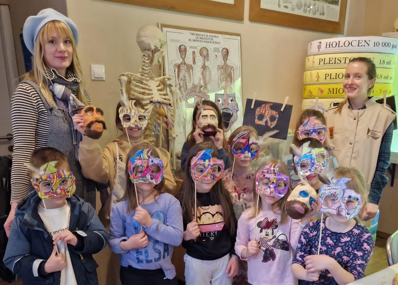 Djeca koja su stigla na radionicu s velikom su voljom izrađivala maske inspirirane prapoviješću, ponajviše neandertalcima i lubanjom C - najpoznatijom krapinskom lubanjom, a pritom su saznala i zanimljivosti iz povijesti maskiranja. Tako su naučila da su najstarije maske bile izrađene od kamena i da su se koristile u ritualne svrhe, da postoje kazališne, plesne, ratničke i fašničke maske te da čak ni zabrane u prošlosti nisu ljude spriječile da se maskiraju. Sudionici su druženje završili u veseloj povorci obilazeći stalni muzejski postav i Nalazište Hušnjakovo.