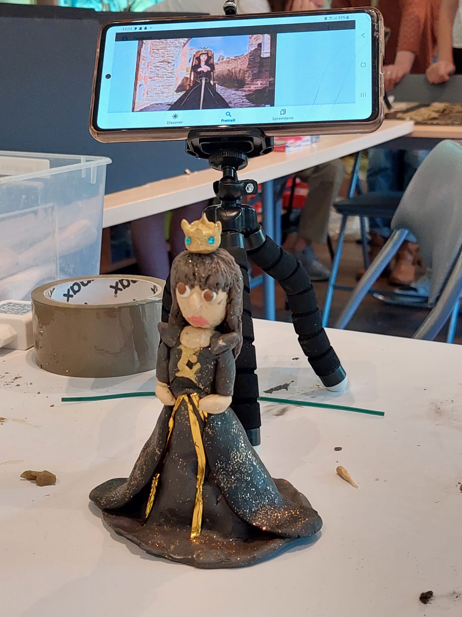 Nakon upoznavanja s poviješću grada Krapine i obilaska važnih kulturno-povijesnih mjesta poput Starog grada, Hušnjakova i Dolca s muzejskim djelatnicima Lorkom Lončar Uvodić i Eduardom Vasiljevićem prvoga dana, višestruko je nagrađivana animatorica Ivana Bošnjak drugog te trećeg dana na radionici animacije upoznala djecu s tehnikom stop animacije. Sudionici su uz njeno vodstvo sami osmislili priču, izradili scenografiju i likove te na kraju snimali odnosno animirali. Glavni likovi poput Crne kraljice i Dragutina Gorjanovića-Krambergera izrađeni su od plastelina te su postali dio kratkih, ali zanimljivih priča inspiriranih Starim gradom i otkrićem pračovjeka na Hušnjakovu. Montirani film koji su djeca napravila u krapinskom muzeju bit će prikazan povodom Dana europske baštine u listopadu te na KIKI festivalu - međunarodnom festivalu dječjeg filma.