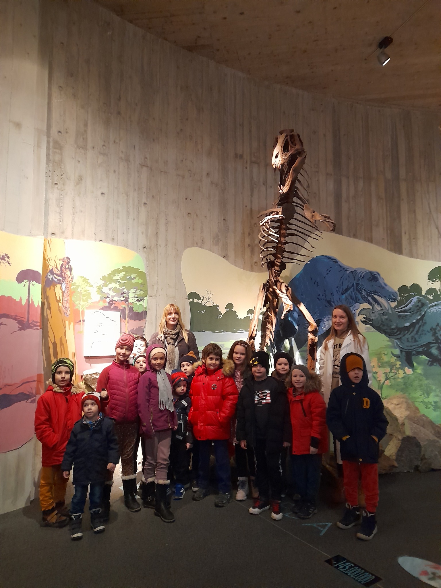 Mali sudionici te poučne i kreativne radionice proučili su i kostur dinosaura vrste Tyrannosaurus rex u stalnom muzejskom postavu.