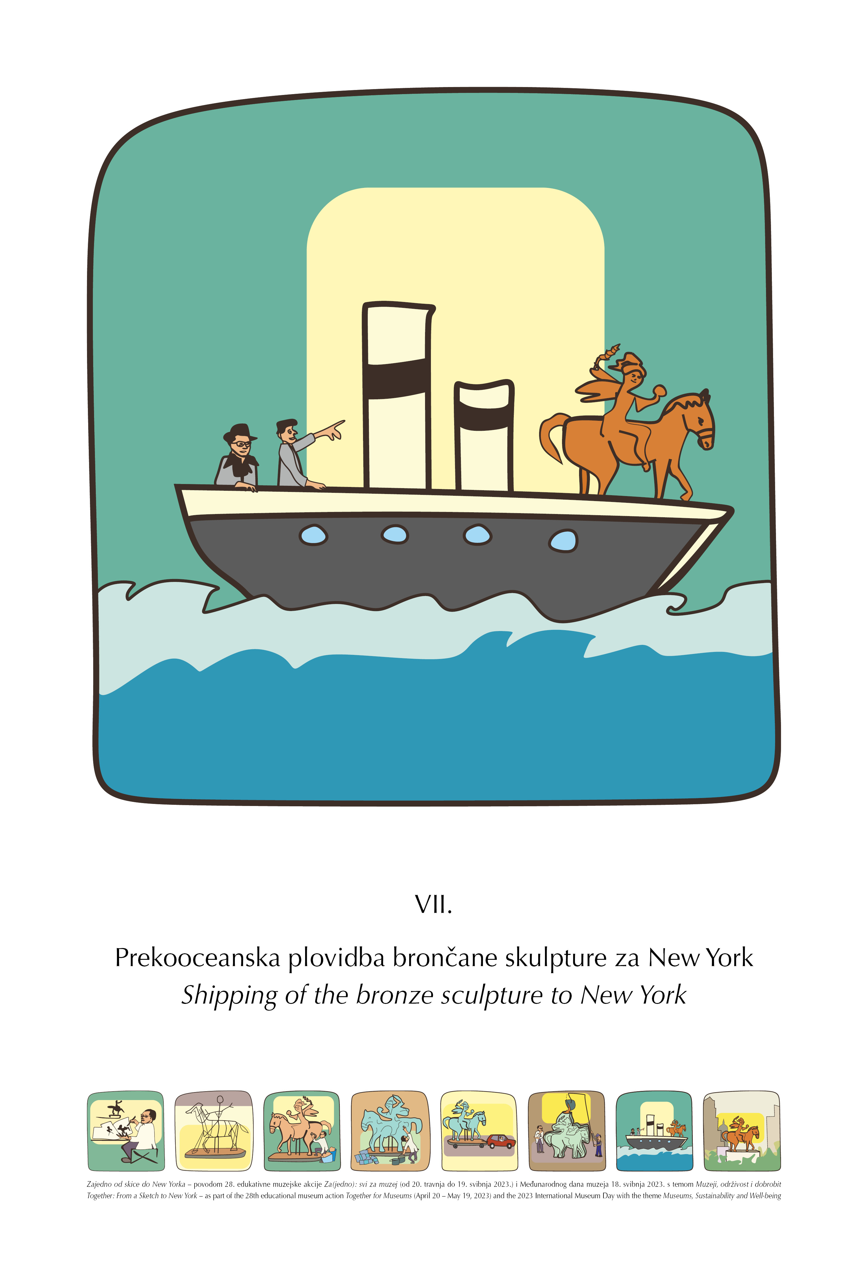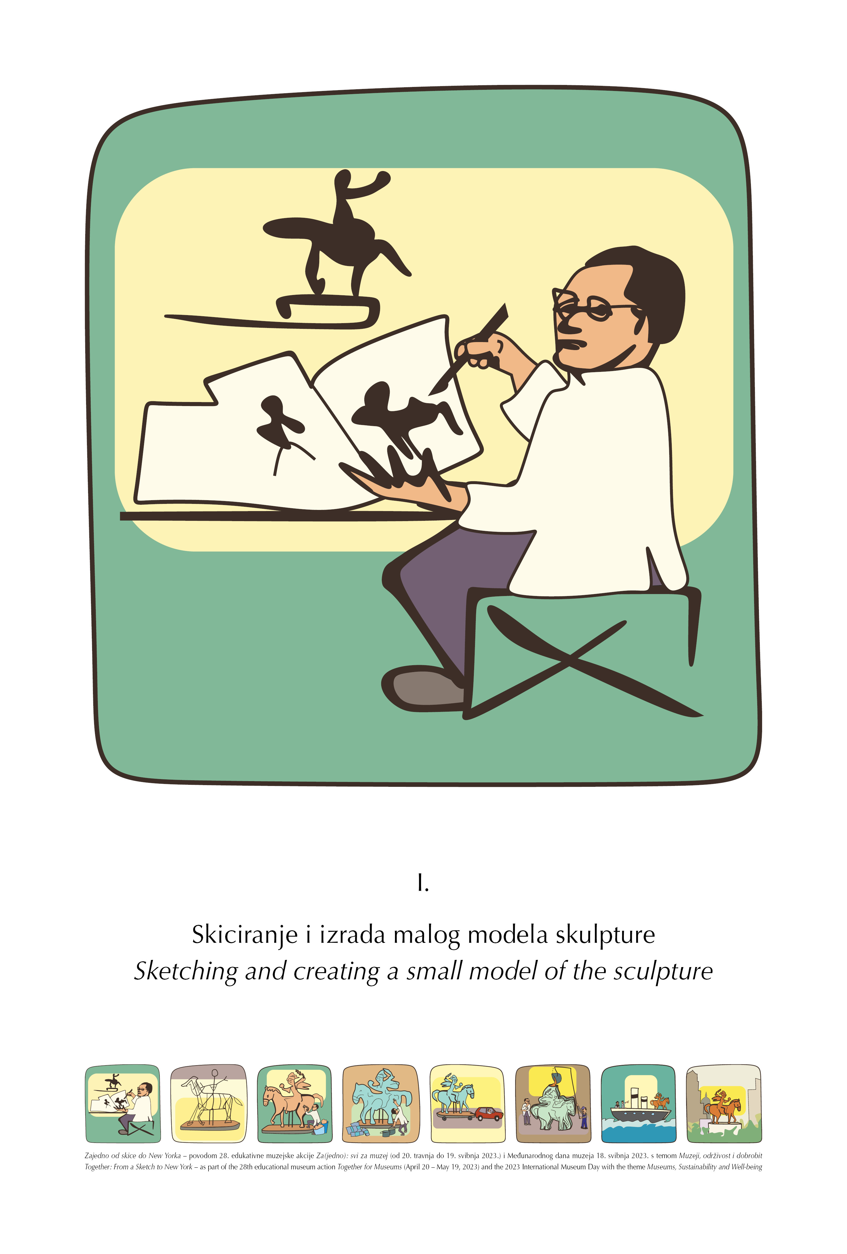 Stripom pričamo priču od nastanka Augustinčićeve prve skica za spomenik Mir, pa sve do putovanja monumentalne skulpture za New York.