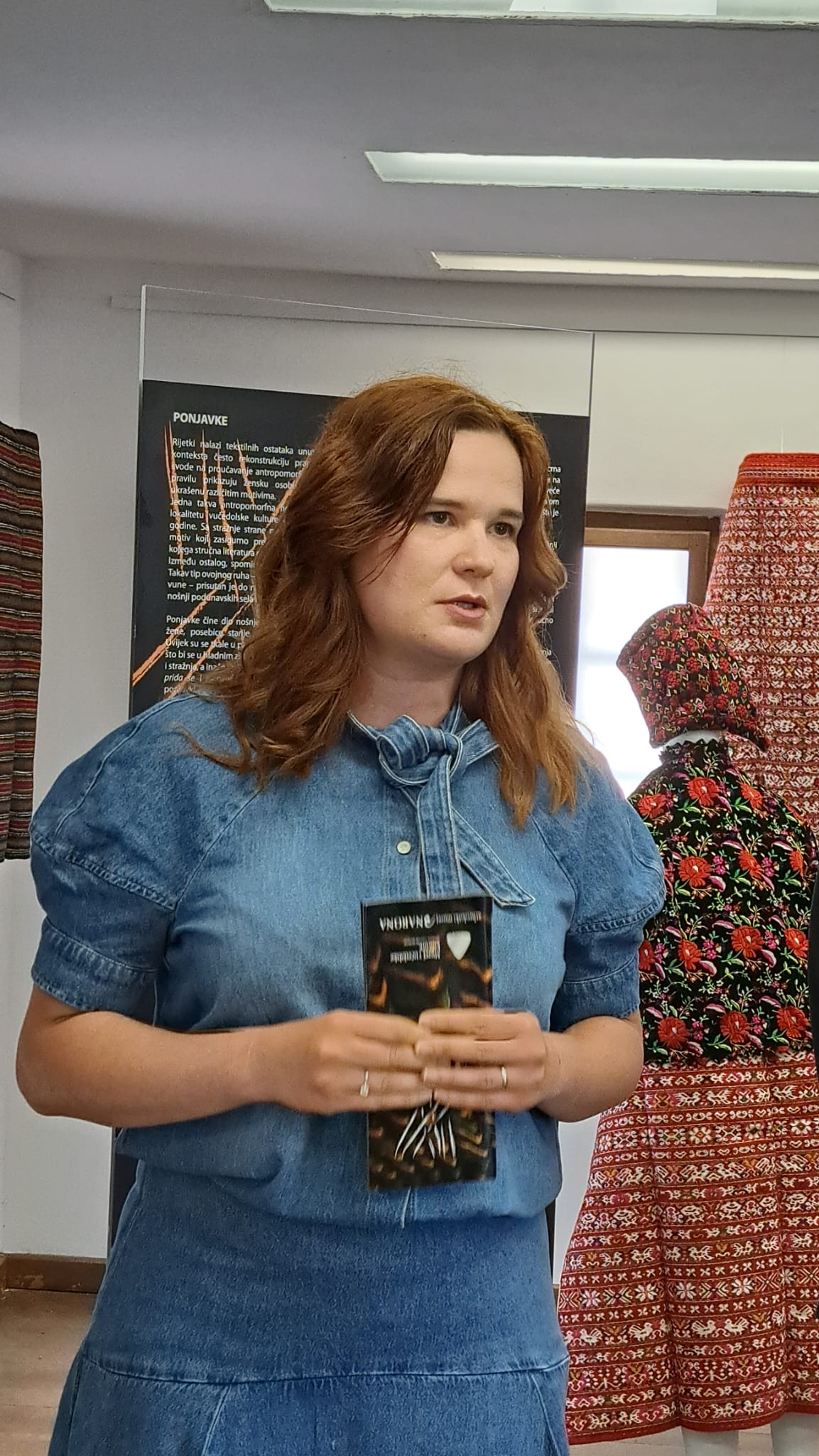 Izložba predstavlja jedinstveni spoj arheologije i etnologije, otkrivajući poveznicu između prapovijesnih vučedolskih ukrasnih motiva na keramici i sličnih uzoraka prisutnih u tradicionalnoj šokačkoj nošnji Baranje.