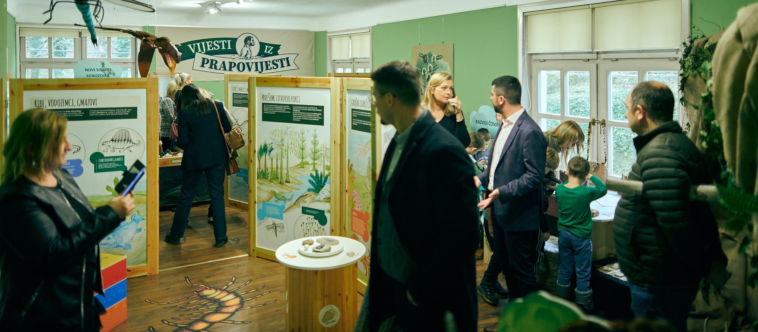 U izložbenom prostoru stare muzejske zgrade (Kneippove zgrade) djeci su predstavljene različite, zanimljive prapovijesne teme na slikovit i interaktivan način. Cjelokupna atmosfera izložbe budi dječju znatiželju i maštu, a različiti didaktički sadržaji potiču djecu na istraživanje rukama, očima i ušima, ali bez korištenja ekrana. Tako mali posjetitelji izložbe mogu iskopavati replike fosilnih kostura u pješčaniku, primiti u ruke i proučiti originalne minerale, na interaktivan način povezati lubanje s licima naših predaka, zaviriti u kutije i ladice te otkriti različite fosile. Tu su i kosti dinosaura, impresivni 3D modeli prapovijesnog divovskog vretenca i letećeg gmaza te brojni drugi zanimljivi predmeti, a djeci iz krapinskog DV-a Gustav Krklec ponajviše se svidjela rekonstrukcija špilje u kojoj se mogu opustiti na krznenom naslonjaču i poslušati zvukove prirode kakvi su okruživali neandertalce. Autorica izložbe je viša muzejska pedagoginja Lorka Lončar Uvodić koja je publiku upoznala sa samom izložbom i procesom rada na izložbi, a gostima se obratila i Mirjana Smičić Slovenec, pročelnica Upravnog odjela za obrazovanje, kulturu, šport i tehničku kulturu KZŽ-a. Cjelokupni program je vodio voditelj Muzeja krapinskih neandertalaca Eduard Vasiljević, a izložbu je službeno proglasio otvorenom Jurica Sabol, ravnatelj Muzeja Hrvatskog zagorja. Za ugodnu atmosferu na otvorenju izložbe pobrinuo se Karlo Šereg, učenik Glazbene škole pri Osnovnoj školi August Cesarec, s mentorom Stjepanom Horvatom.