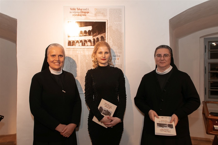Na samom početku svečanosti Renata Dečman pozdravila je sve okupljene i predstavila je izložbu kojom se javnosti prezentira povijest dvorca, njegova namjena i korisnici od 1938. do 1945. godine. Objasnila je kako se radi o razdoblju kada su Velikim Taborom upravljale časne sestre Družbe Kćeri Milosrđa Trećeg reda sv. Franje iz Blata na Korčuli. U dvorac su se doselile u kolovozu 1938., uskoro nakon što ga država kupuje od dotadašnjeg vlasnika Tomislava Ivekovića (sina poznatog slikara Otona Ivekovića) i u njemu su živjele sve do studenoga 1945. godine. Nakon njihova dolaska Veliki Tabor počinju koristiti ferijalne kolonije, a časne su sestre skrbile o djeci koja su dolazila na jednomjesečni ili dvomjesečni boravak. U vrijeme Drugoga svjetskog rata, u dvorcu je bio smješten državni dječji dom, a časne su se sestre brinule o ratnoj siročadi. Odlukom Ministarstva prosvjete NDH u Velikom je Taboru u kolovozu 1944. godine otvorena i osnovna škola s četiri razreda, pod upravom škole u Desiniću. Dečman je zatim istaknula kako dvorac istovremeno postaje poprištem aktivnosti boraca Narodnooslobodilačkog rata jer su se partizani kretali i djelovali u njegovoj neposrednoj blizini, a često su koristili i unutrašnjost dvorca. Ovdje je 2. studenoga 1943. osnovana Desinićka partizanska četa, a iz svjedočanstava sudionika događanja znade se da su partizani odlazili u Veliki Tabor kako bi se odmorili i oporavili od bitaka. Koliko je poznato, partizani su također koristili dvorac za tajne sastanke te čuvanje vojnih zaliha, a kada su u prvoj polovici 1944. čvrsto držali Desinić u svojim rukama na sebe su preuzeli brigu o ratnoj siročadi i časnim sestrama. Autorica izložbe potom je prisutne upoznala i s izložbama koje su se uskoro po završetku Drugoga svjetskog rata otvarale u Velikom Taboru, a kojima je prezentirana Narodnooslobodilačka borba na području kotara Pregrada.